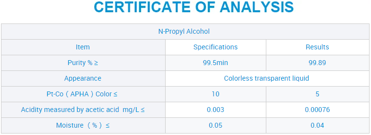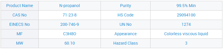 CAS No.:71-23-8 MF:C3H8O EINECS No.:200-746-9 Other Names:N-Propyl Alcohol/1-Propanol Grade Standard:Industrial Grade Purity:99.5%min Appearance:Colorless Transparent Liquid Application:Solvent Brand Name:Shandong Pulisi Port of loading:Qingdao/Shanghai Packing:800KG Drum Mark:Customizable HS Code:29051210 Density:0.804g/cm³ Molecular Weight:60.1 Certificate:COA MSDS ISO Quantity:16MTS/20'FCL Storage:Cool Dry Place