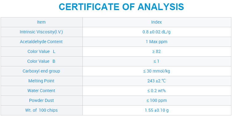 Grade:Bottle Grade Polyethylene Terephthalate(PET)Resin