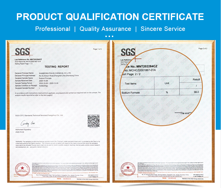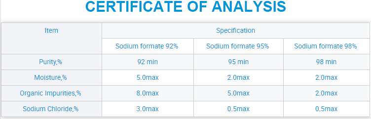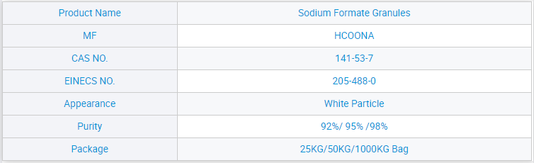 CAS No.:141-53-7 MF:HCOONA EINECS No.:205-488-0 Grade Standard:Industrial Grade Purity:92% 95% 97% 98% Appearance:White Granules Application:Snow-melting Agent Port of loading:Qingdao/Tianjin/Shanghai Packing:25KG/1000KG Bag Sample:Available HS Code:29151200 Solubility:Dissolved in water and glycerol Certificate:ISO SGS COA MSDS Molecular Weight:68.01 Melting Point:≥253°C Density:1.92g/cm3 Quantity:20-26MTS/20`FCL Process:Synthetic Method/By-product Method Mark:Customizable
